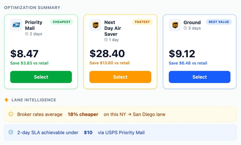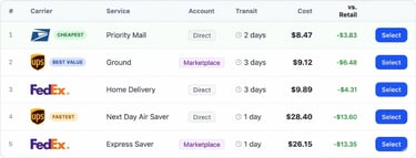 We aggregate rates across multiple accounts, marketplaces, and direct carrier relationships — not just one — and dynamically surface the lowest-cost label for every shipment.